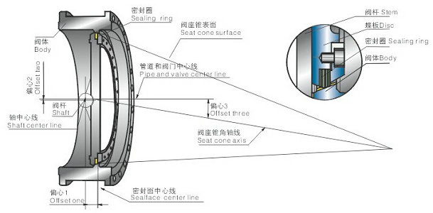 氣動(dòng)三偏心蝶閥結構原理: